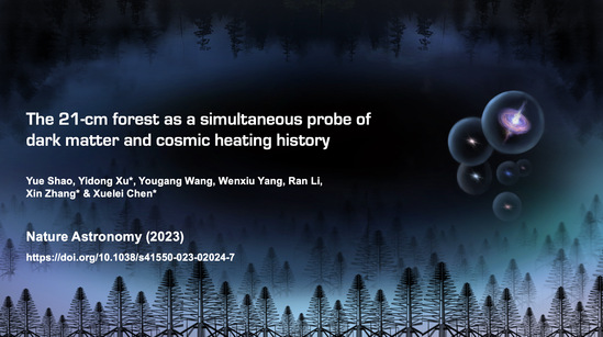 7月6日晚,《自然—天文》杂志在线发表了东北大学和中科院国家天文台联合团队(张鑫—陈学雷团队)的一项重大成果,该项研究提出了一种新方法,利用宇宙黎明时期的21厘米森林观测来同时探测暗物质和宇宙中第一批星系。论文第一作者为东北大学博士生邵悦,通讯作者为国家天文台徐怡冬副研究员、东北大学张鑫教授和国家天文台/东北大学陈学雷研究员。
