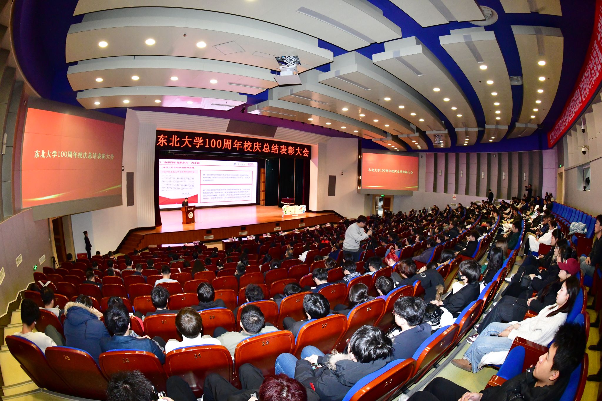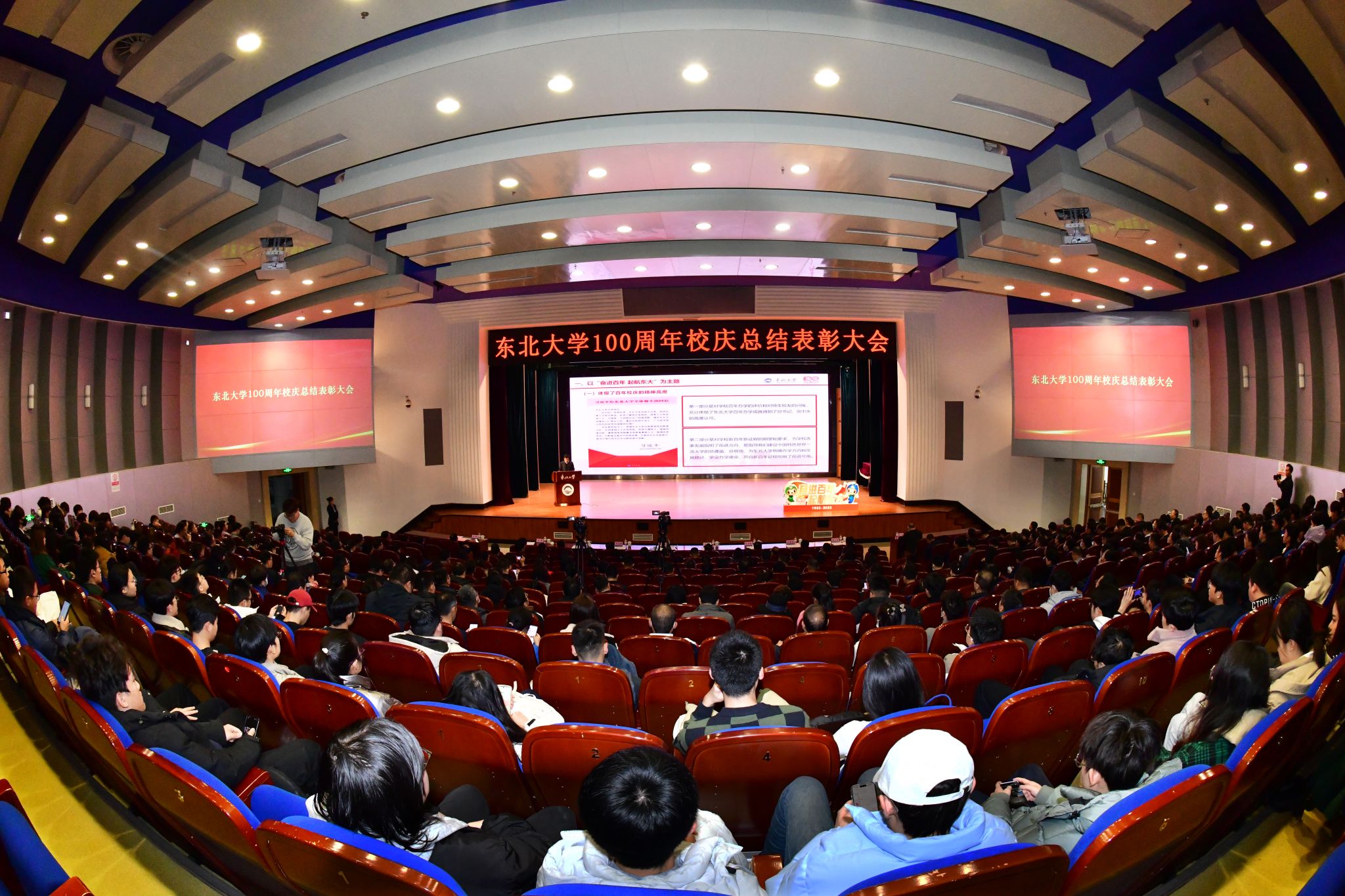 巍巍学府奋进路,风华正茂新征程。11月20日,东北大学100周年校庆总结表彰大会在汉卿会堂蔡冠深报告厅隆重举行。学校领导班子成员,各部门负责人,受表彰的先进集体、先进个人、优秀学生志愿者、优秀学生演员等师生代表参加会议。会议在秦皇岛分校和浑南校区设置分会场。副校长孙雷主持会议。