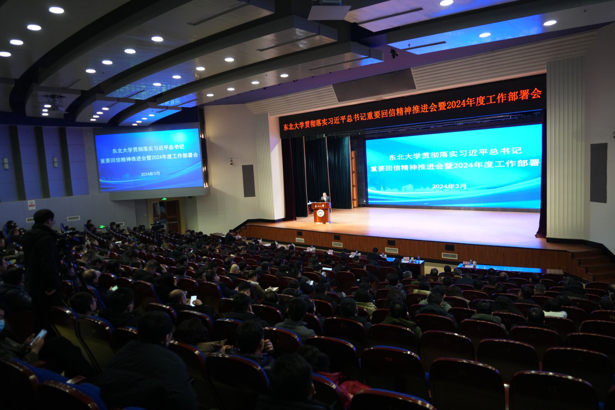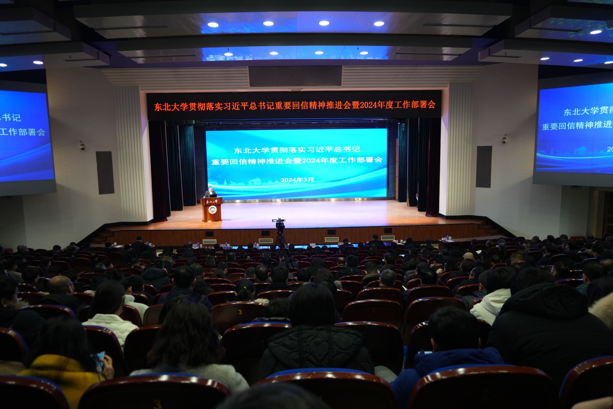 逐梦新征程,奋斗创未来。3月3日,东北大学召开贯彻落实习近平总书记重要回信精神推进会暨2024年度工作部署会。会议的主题是深入贯彻落实习近平总书记重要回信精神,总结2023年学校工作,分析教育改革发展和学校面临的形势任务,并对2024年重点工作进行部署。