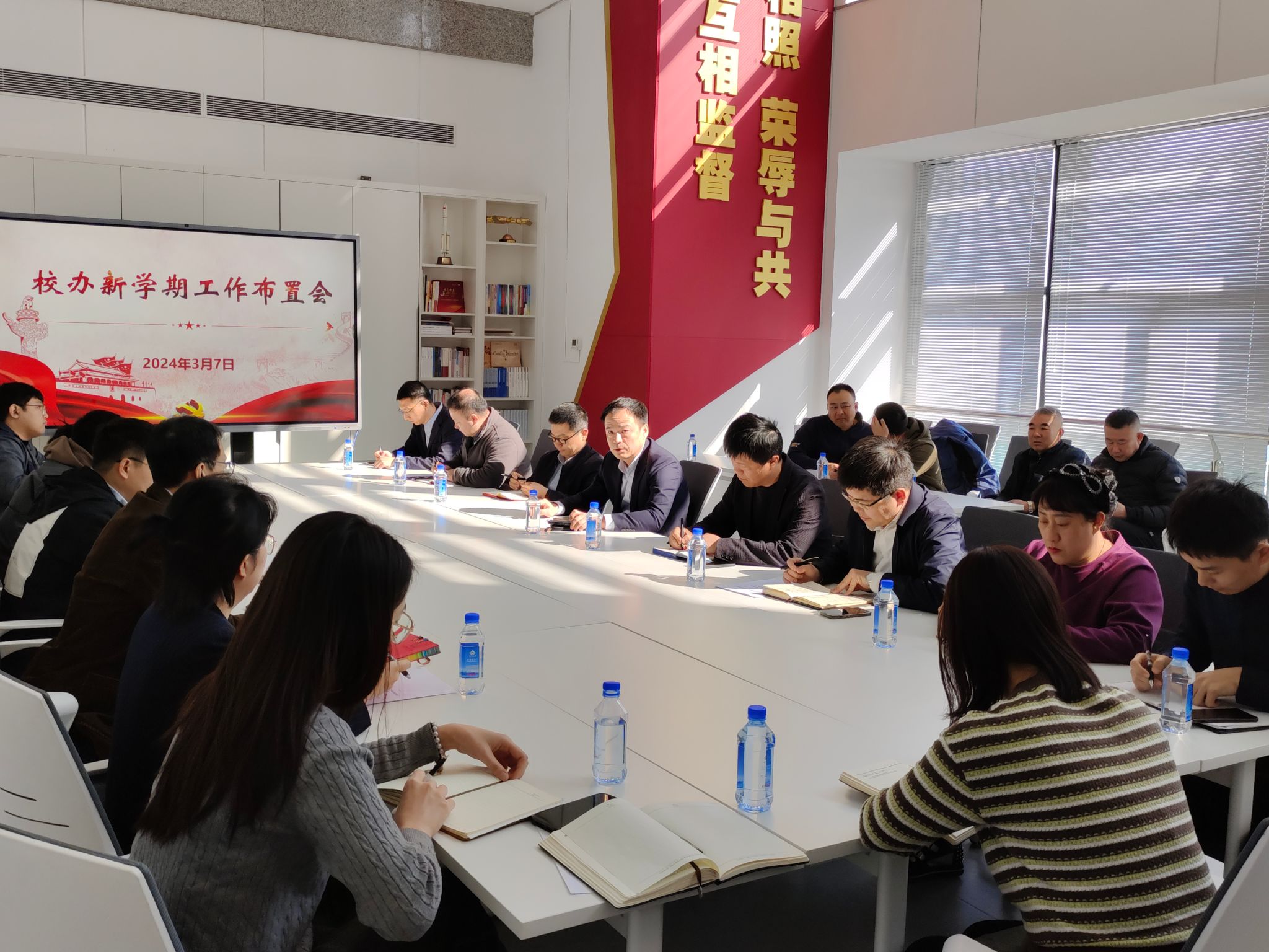 3月7日,校长办公室在主楼1401B召开新学期工作布置会,校办主任刘延晖向全体同志传达了学校贯彻落实习近平总书记重要回信精神推进会暨2024年度工作部署会的会议精神,并结合学校中心工作布置校办重点工作任务。